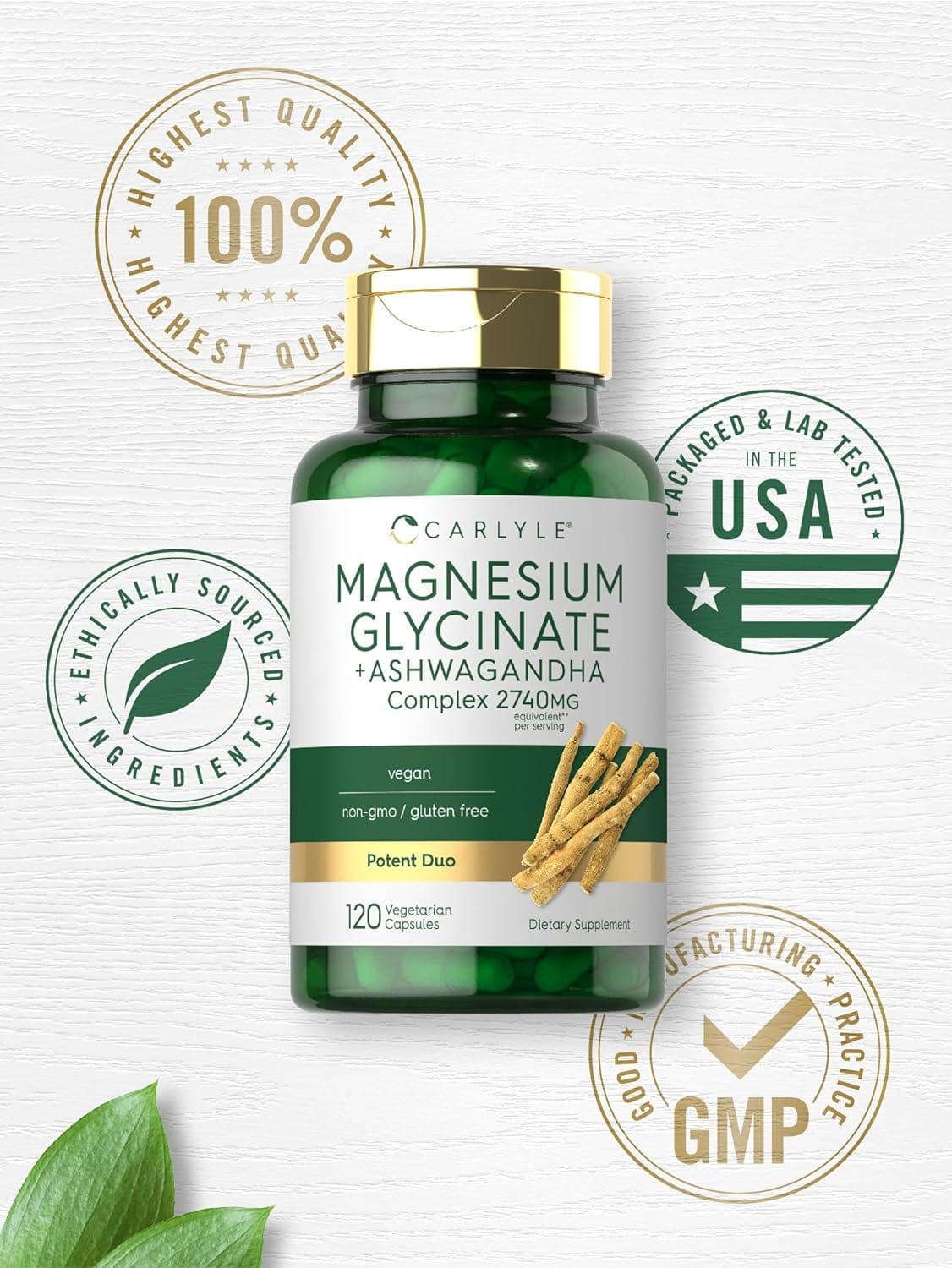 Exclusive Insights: Carlyle's Magnesium Glycinate with Ashwagandha supplement offers a potent duo that maximizes the benefits of both ingredients. The highly bioavailable magnesium glycinate ensures optimal absorption, while the addition of ashwagandha provides extra support for stress management. This vegetarian, non-GMO, and gluten-free supplement is a testament to Carlyle's commitment to quality and wellness.