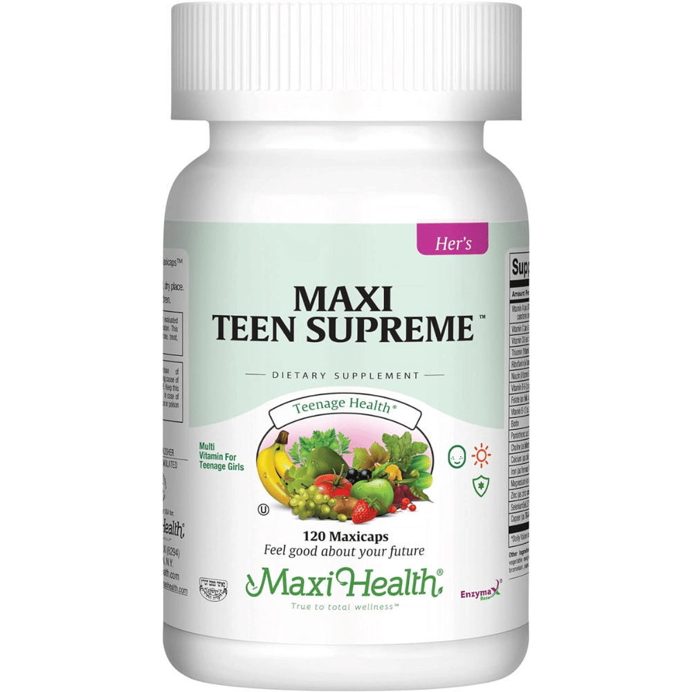 Maxi Health's Teen Supreme is a multivitamin designed for the discerning teen girl who values a kosher, gluten-free, and vegetarian supplement to support her busy and demanding lifestyle.