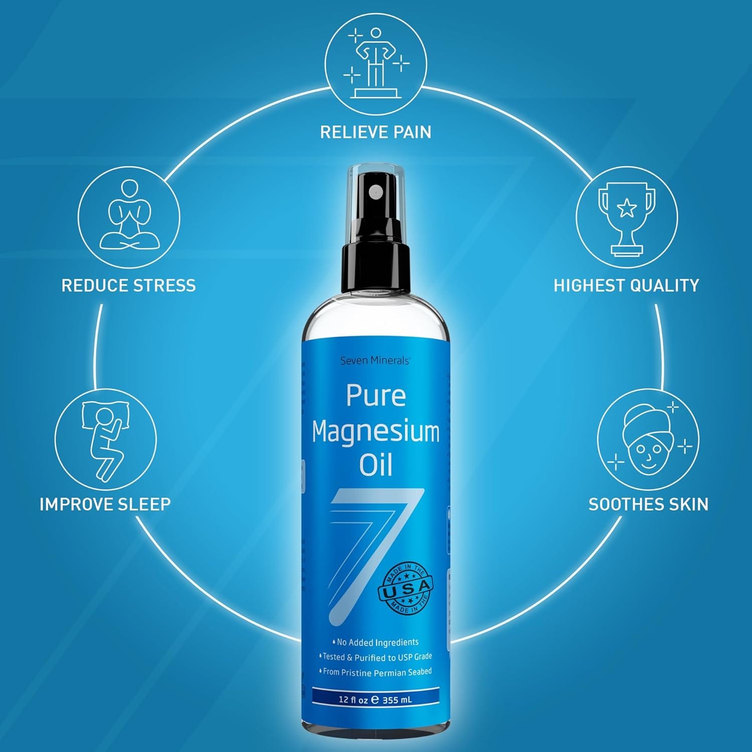 Seven Minerals Pure Magnesium Oil Spray is not just any magnesium spray; it's a refreshing mist of wellness, offering profound relaxation and overall well-being. Sourced from the untouched and natural state of an ancient underground Permian seabed in the USA, this USP Grade Magnesium Spray is free from heavy metals and unhealthy trace minerals, ensuring that you receive only the essential magnesium your body craves.
