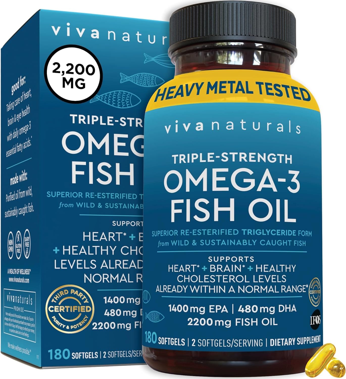 Viva Naturals offers a high-quality supplement that's both potent and pure. Their triple-strength omega-3 fish oil is designed to support various aspects of your health with a significant dose of EPA and DHA.
